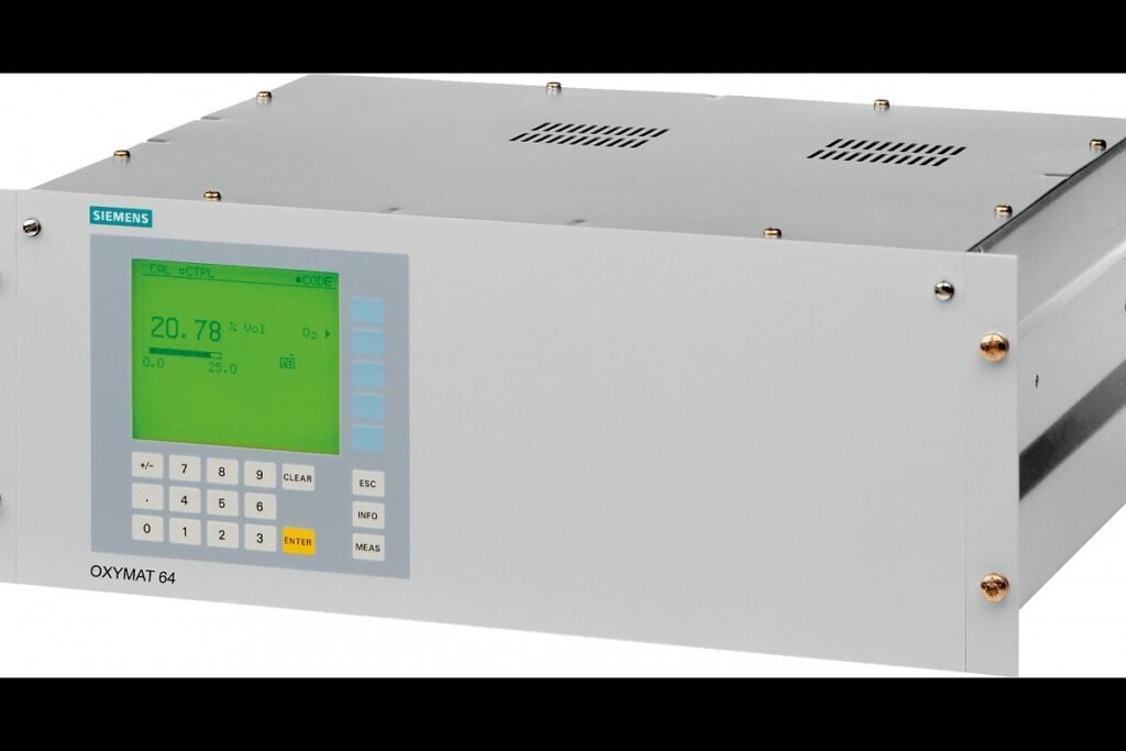 Gas Analyzer OXYMAT 64, 19″ unit for installation in cabinets ZrO2: Catalytically inactive cell (CIC) Low pressure, without suction pump (Atmosphere) Input: clamping ring connection 1/4″, output: Fittings 1/4″ Gas monitoring: Flowmeter and limit switch (internal) Without AC 200 to 240 V, 48 to 63 Hz Without . Germany
